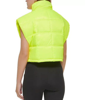 Calvin Klein Women's Cropped Mock-Neck Zip-up Vest Neon Green Size M MSRP $80