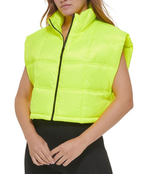 Calvin Klein Women's Cropped Mock-Neck Zip-up Vest Neon Green Size M MSRP $80