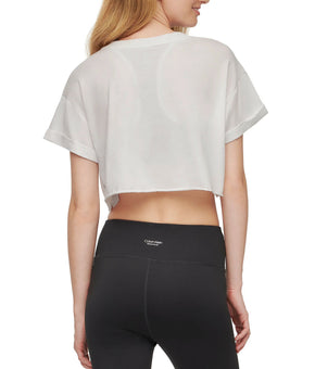 Calvin Klein Performance Sliced Logo Cropped TShirt Womens White Size L MSRP $40