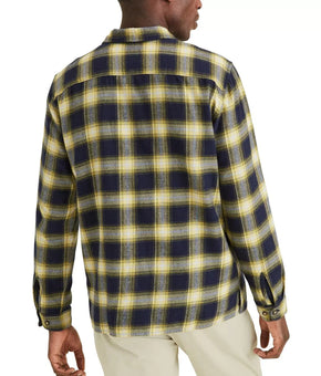 DOCKERS Men's Alpha Plaid Camp Shirt Navy Blue Yellow Size XL MSRP $79