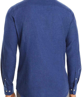 Dylan Gray Herringbone-Pattern Classic Fit Flannel Men Casual Shirt Blue Size M