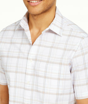 Tasso Elba Men's Stretch Dobby Plaid Shirt Ivory Off White Multi Size S