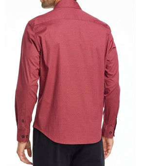 Tallia Men's Slim Fit Black Dot Long Sleeve Shirt Burgundy Wine Red Size S