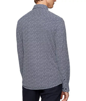An advanced shirt tailored to a slim fit by BOSS Menswear. Crafted in performance-stretch jersey for a flexible feel, this long-sleeved shirt is printed all over with a contemporary motif....