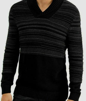INC Mens Sweater Black Size XL Stripe Shawl Collar Knit Pullover MSRP $70