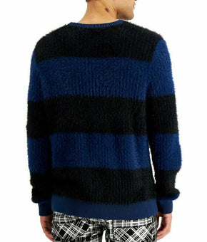 INC Mens Sweater Black Fuzzy Knit Rugby Stripe Pullover Blue Size L MSRP $70