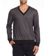 Tallia Men's Slim Fit Zig Zag V Neck Sweater Black Grey Charcoal Size S