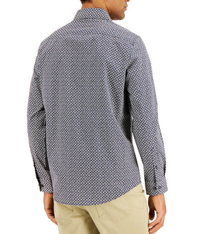 Tasso Elba Men's Stretch Medallion-Print Poplin Shirt Navy Blue Combo Size S