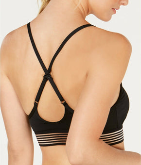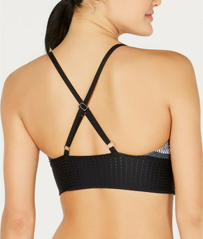 Nike Women Line Up Printed Cross-Back Long-Line Bikini Top Black Size S