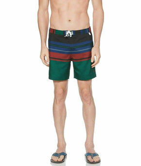 Original Penguin TRUE BLACK GREEN Fixed Waist Volley Swim Trunks, US 31