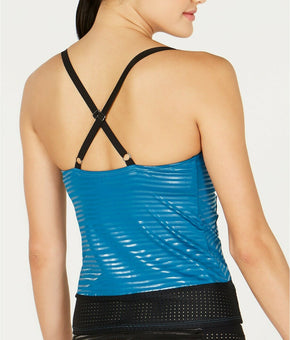 Nike Women 6:1 Shine Striped Cross-Back Tankini Top Teal Blue Size S