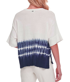 DKNY Women Ribbed Cotton Tie-Dye Sweater White Navy Blue Size XS