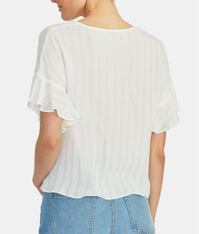RACHEL Rachel Roy Women Zinnia Tie-Front Top Gold Ivory White Size M