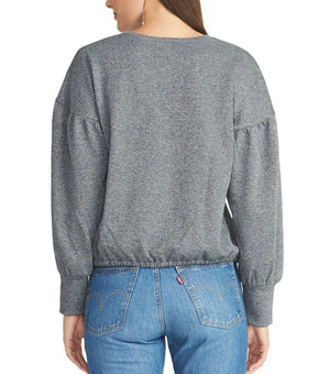 RACHEL Rachel Roy Women Elizabeth Drawstring-Hem Sweater Glitter Grey Size XS