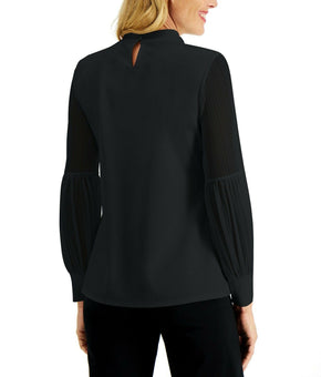 JM Collection Women Sheer-Sleeve Top Black Size S