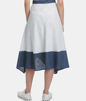 Dkny Women's Striped Asymmetrical-Hem Skirt Blue White Denim Size 2