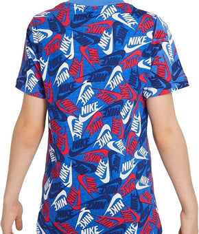 Nike Boys NSW Futura All Over Print TEE DH6560-480 Game Blue Size Large
