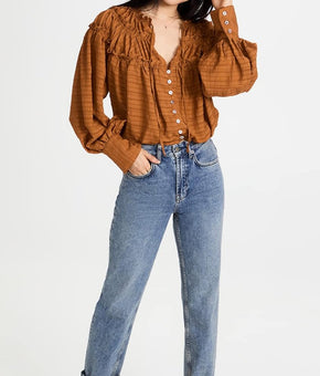 Free People Women's Hailey Blouse, Glazed Ginger, Orange, M