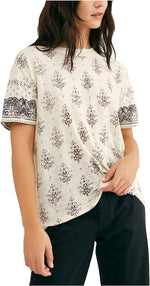 Free People We The Free Womens Yellow Printed Short Sleeve Ivory Top SIze XS
