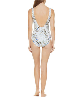 Go for ocean-fresh flair with this one-piece swimsuit from DKNY. An attractive twist front and cute cutout accentuate the V-neck design, bringing a fun, flirty look to the style.* Removable...