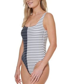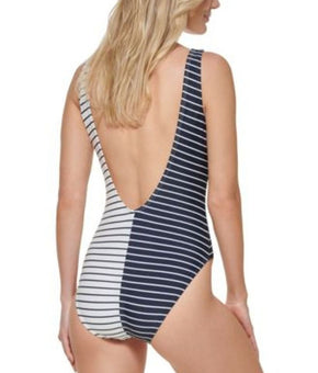 Tommy Hilfiger Women's Split Striped Tank One Piece Swimsuit Blue Size 12