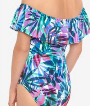 $94.05Features:Turn on your brights with this vibrant printed one-piece from Swim Solutions that's ruched and ruffled with off-the-shoulder style and a tummy-control design. Non-removable cups. Moderate bottom coverage. Tummy control....