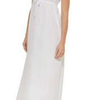 DKNY Women's V Neck Front Tie Maxi Dress Cover Up Swimsuit White Size XL