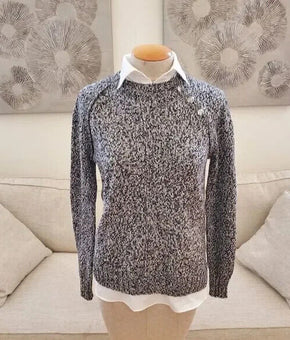 Lauren Ralph Lauren Womens Layered Cotton-Blend Sweater Black/Cream Size M