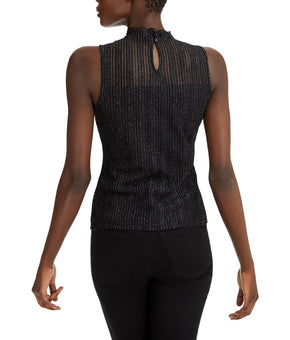 INC Sleeveless Shine Mock-Neck Top womens black Size S MSRP $60