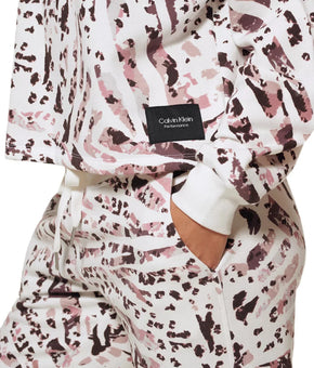 Calvin Klein Performance Women's Printed Crop Pullover Top White Size L MSRP $60