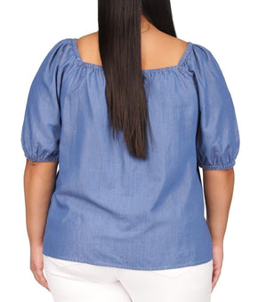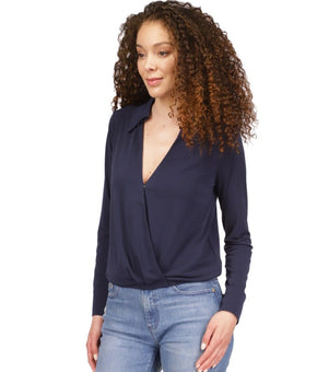 JOSIE NATORI Printed Cropped Top Blue Navy Size M MSRP $48
