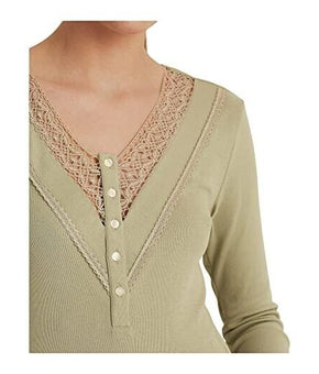 RALPH LAUREN Womens Green Lace 5 Button Placket V Top Green Size XL MSRP $80
