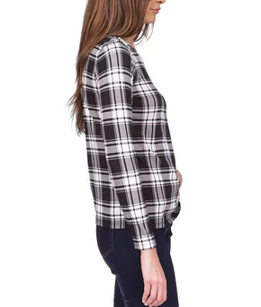 MICHAEL MICHAEL KORS Plaid Lace-Up Top Black Ivory Size XL MSRP $78
