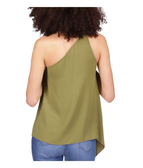 MICHAEL KORS Asymmetrical Chain-Strap Top Olive Green Size M MSRP $84