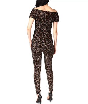 MICHAEL KORS Lace Off-The-Shoulder Top Brown Black Size S MSRP $98