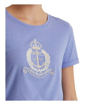 Lauren Ralph Lauren Womens Blue Short Sleeve Crew Neck T-Shirt Size XS MSRP $80