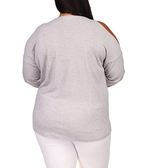 MICHAEL KORS Gray Embellished Cold Shoulder Waffle Knit Heather Plus Size 1X $88