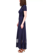 Sheer mesh stripes add intrigue to this Michael Michael Kors dress, a sophisticated maxi with stylish flair.